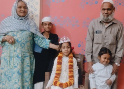 बच्ची को पूछने पर बताया कि मुझे खुशी का अहसास हो रहा है ओर में अपने परिवार शहर व मुल्क की खुश हाली की दुआ करती हूँ। इस अवसर दादा रोशन खान दादी रमजो बानो पापा रुस्तम खान मम्मी सूबाना चाचा मुस्ताक खान चाची शबनम बानों ताऊ उस्मान खान ने खुशी ज़ाहिर करते हुए दावत दी।