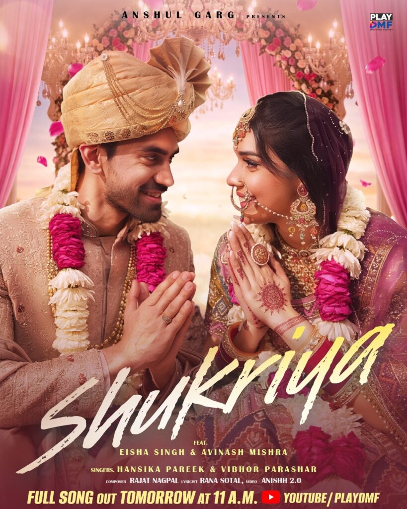 इस म्यूजिक वीडियो में अविनाश और ईशा की एक प्यारी सी लव स्टोरी दिखाई गई है, जिसमें वे शादी की रस्में निभाते नजर आते हैं, जैसे हल्दी और फेरे। उनकी वापसी से दर्शकों में काफी खुशी है और दोनों की केमिस्ट्री ने इंटरनेट पर धूम मचा दी है। फैंस उनकी जोड़ी और बॉन्डिंग की जमकर तारीफ कर रहे हैं। शुक्रिया गाने को हंसिका पारेख और विभोर पराशर ने गाया है, जबकि इसका म्यूजिक रजत नागपाल ने दिया है।