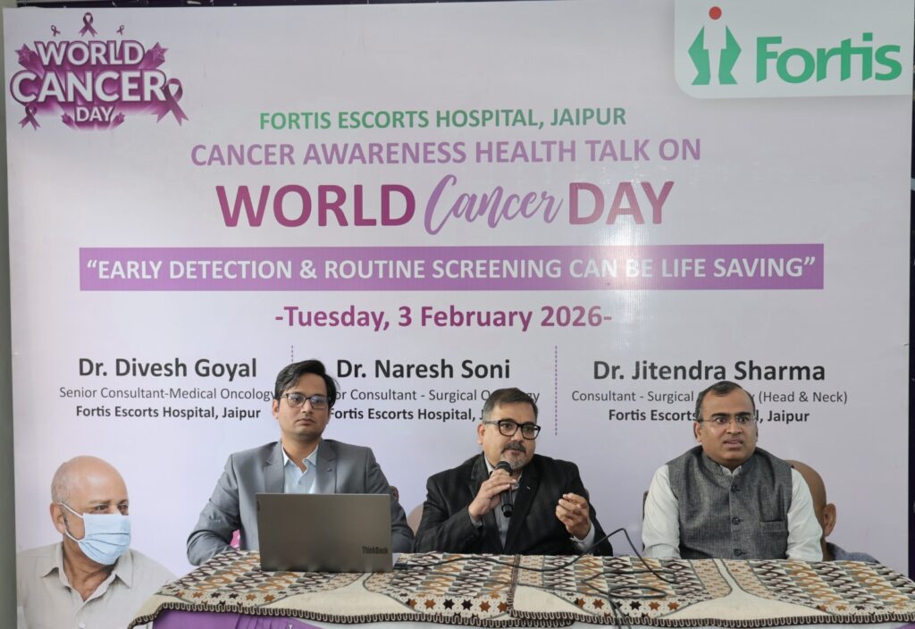 जयपुर। विश्व कैंसर दिवस के अवसर पर फोर्टिस एस्कॉर्ट्स हॉस्पिटल, जयपुर द्वारा एक विशेष कैंसर जागरूकता हेल्थ टॉक का आयोजन किया गया। इस कार्यक्रम का उद्देश्य आम लोगों को कैंसर की शुरुआती पहचान, समय पर जांच, रोकथाम और आधुनिक इलाज के बारे में जागरूक करना था। इस हेल्थ टॉक में मरीजों, उनके परिजनों और शहर के कई नागरिकों ने सक्रिय रूप से भाग लिया।