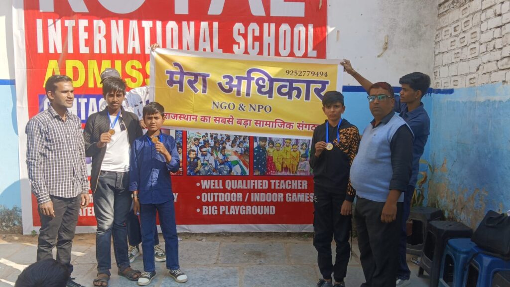 जयपुर। मेरा अधिकार संस्था की ओर से रॉयल इंटरनेशनल स्कूल जोडला हरमाड़ा में जवाहरलाल नेहरू का जन्मोत्सव बाल दिवस के रूप में हर्ष उल्लास के साथ मनाया। स्कूल प्रांगण में अनेक कार्यक्रम कराए नन्हे मुन्ने बच्चों के लिए विभिन्न प्रकार के म्यूजिकल चेयर अंताक्षरी डांस आदि की गई। कार्यक्रम के दौरान संयोजक सुनील जैन ने बच्चों से चाचा नेहरू के बारे में प्रश्न पूछे बच्चों ने सोच समझकर सही जवाब देने पर प्रथम रामसेवक प्रजापति, द्वितीय राजवीर कुमार, दिलकुश बैरवा को गोल्ड मेडल व पैन देकर सम्मानित किया। विद्यालय डायरेक्टर मोहनलाल सैनी ने पंडित जवाहरलाल नेहरू जी की जीवन पर प्रकाश डाला तथा सभी देशवासियों को बाल दिवस की शुभकामनाएं दी। इस मौके पर समस्त स्टाफ मौजूद रहे।