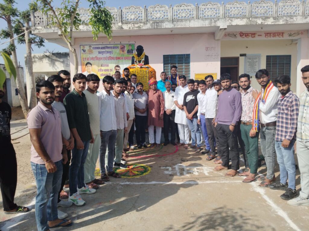 मनोहरपुर (जयपुर)। जयपुर राजस्थान बलाई विकास संस्थान द्वारा संचालित बलाई छात्रावास के परिसर में आज डॉक्टर बी आर अंबेडकर की मूर्ति पर पदाधिकारी एवं छात्रों द्वारा माला अर्पण किया गया। इस अवसर पर संस्थान के संरक्षक गणपत वर्मा ने छात्रों को संबोधित करते हुए डॉक्टर अंबेडकर के जीवन पर प्रकाश डाला तथा कहा कि 1949 में आज के ही दिन संविधान को अपनाया गया था जो 26 जनवरी 1950 को भारत में लागू हुआ था। हमारा यह संविधान सर्वोच्च मानवीय मूल्य उत्कृष्ट लोकतंत्र आदर्श कर्तत्यो व अधिकारों की पावन अभिव्यक्ति है तथा यह हमें स्वतंत्र राष्ट्र की उसे नीम की याद दिलाता है जो हर भारतीय को शक्ति देती है। संस्थान के वरिष्ठ उपाध्यक्ष सीताराम बुनकर उपाध्यक्ष बल्लभ राम बुनकर कोषाध्यक्ष जगदीश प्रसाद वर्मा छात्रावास सचिव राजेंद्र कुमार बुनकर सुभाष वर्मा बनवारी लाल लाइनमैन महेंद्र कुमार बुनक हनुमान सहाय अनिल कुमार वह अन्य छात्र इस अवसर उपस्थित थे।
