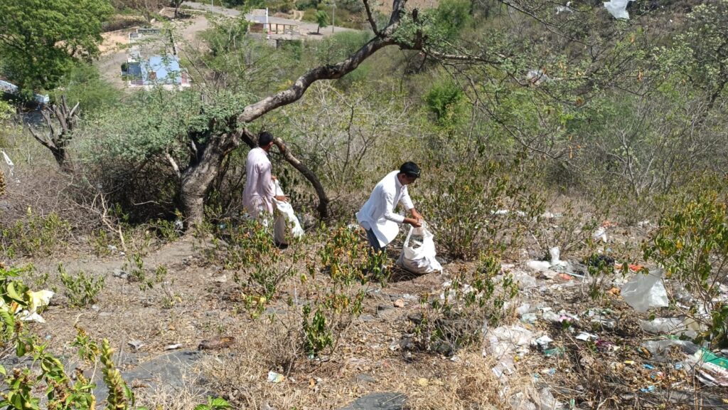 पृथ्वी दिवस पर एल पी एस विकास संस्थान द्वारा युवाओं के सहयोग से हनुमान जी की डूंगरी भोपाला में 70 किलो पोलोथिन एकत्रित कर संस्थान के प्रकृति प्रेमी राम भरोस मीणा ने संदेश दिया कि पृथ्वी को दूषित करने में पालिथीन सबसे बड़ा सहयोग है, हमें प्लास्टिक का बहिष्कार करना चाहिए, बढ़ती जनसंख्या, वनों के बढ़ते विनाश, आधुनिक विकास और विज्ञान के प्रयोगों ने लगभग 96 प्रतिशत भूमि को दूषित कर दिया, यही नहीं 46 प्रतिशत भूमि बंजर हो चुकी है। बढ़ते प्रदूषण से एक तरफ़ मौसम परिवर्तन, वर्षा की अनिश्चितताओं कों झेलना पड़ रहा है दुसरी तरफ कृषि उत्पादन पर संकट मंडराने लगे हैं, वर्तमान परिस्थितियों को देखते हुए हमें सर्वाधिक वृक्षारोपण, वनस्पतियों को संरक्षण के साथ पृथ्वी को स्वच्छ सुंदर रखने की जरूरत है। कार्य क्रम के तहत् गजानंद शर्मा ने अपने विचार व्यक्त किए।