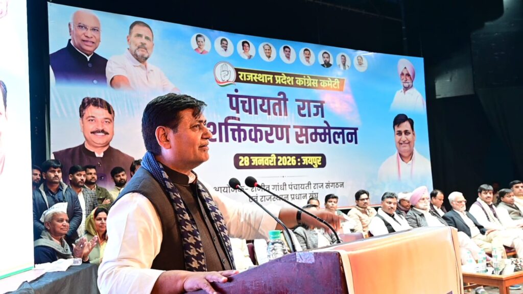 इस अवसर पर उपस्थित कांग्रेसजनों को सम्बोधित करते हुये प्रदेशाध्यक्ष गोविन्द सिंह डोटासरा ने कहा कि 6 साल से अधिक समय पंचायती राज प्रतिनिधियों का चुनाव हुये बीत गया है, किन्तु इस सरकार ने जानबूझकर संवैधानिक प्रावधानों का उल्लंघन करते हुये प्रदेश में समय पर पंचायती राज संस्थाओं के चुनाव नहीं करवाये हैं। सरकार से सवाल है कि एक तरफ तो भाजपा के नेता एवं प्रधानमंत्री स्वयं संविधान की दुहाई देते हैं, संसद में प्रधानमंत्री संविधान को माथे पर लगाते हैं और दूसरी ओर संविधान के प्रावधानों का पूर्णतया उल्लंघन भाजपा की प्रदेश सरकार कर रही है। संविधान के आर्टिकल 243यू में और 243ई में स्पष्ट प्रावधान है कि पंचायती राज संस्थाओं और नगर निकायों के चुनाव 5 वर्ष की अवधि में कराना आवश्यक है, किन्तु पंचायतों का कार्यकाल समाप्त हुये एक साल बीतने के बावजूद भी चुनाव नहीं हुये हैं, सरपंच को प्रशासक लगा दिया, लेकिन प्रधान व जिला परिषद् सदस्य कार्यमुक्त हो गये हैं, पिछले दो वर्ष से ग्रामीण राजस्थान के विकास के लिये किसी प्रकार की राशि पंचायती राज संस्थाओं को नहीं मिल रही है और ग्रामीण क्षेत्रों का विकास पूर्णतया भाजपा सरकार ने ठप्प कर दिया है। राजस्थान में भाजपा शासन की ऐसी स्थिति है कि जिन प्रधानों का कार्यकाल शेष था, उन्हें जानबूझकर निलम्बित किया जा रहा है, कोर्ट से आदेश लाने के बावजूद भी बेनुगाह साबित कर कोई प्रधान पुन: पद पर आ जाये तो उसे बिना कारण हटा दिया जाता है। कांग्रेस शासन में बिना भेदभाव के पंचायती राज संस्थाओं के जनप्रतिनिधियों का सम्मान किया जाता था और विकास के लिये राशि जारी होती थी। समय पर उप चुनाव करवाये जाते थे, किन्तु भाजपा हर प्रकार से भेदभाव कर रही है। पूर्व प्रधानमंत्री भारत रत्न स्व. राजीव गॉंधी ने संविधान में 73वां और 74वां संशोधन किया, जिस कारण पंचायती राज संस्थाओं के माध्यम से देश में नेतृत्व देने के लिये नये नेता उभर कर सामने आये, किन्तु भाजपा इस व्यवस्था के खिलाफ है, इसीलिये पंचायती राज संस्थाओं को नष्ट करने पर तुली हुई है। पंचायती राज संस्थाओं के माध्यम से देश के गरीब, पिछड़े, दलित, युवा और अल्पसंख्यक के सशक्तिकरण का काम हुआ था, जिसे भाजपा मिटाना चाहती है। माननीय उच्चत्तम न्यायालय ने 2021 में निर्णित किया था कि पंचायती राज संस्थाओं के चुनावों में ओबीसी को आरक्षण हेतु ओबीसी आयोग की सिफारिशें लेनी आवश्यक है, किन्तु प्रदेश में भाजपा की सरकार ने दो वर्ष तक ओबीसी आयोग का गठन नहीं किया और अब उन्हें संसाधन नहीं दिये जा रहे हैं, ऐसे में कब रिपोर्ट आयेगी और कब पंचायती राज संस्थाओं के चुनाव सम्पन्न हो सकेंगे, यह समझ से परे है।
