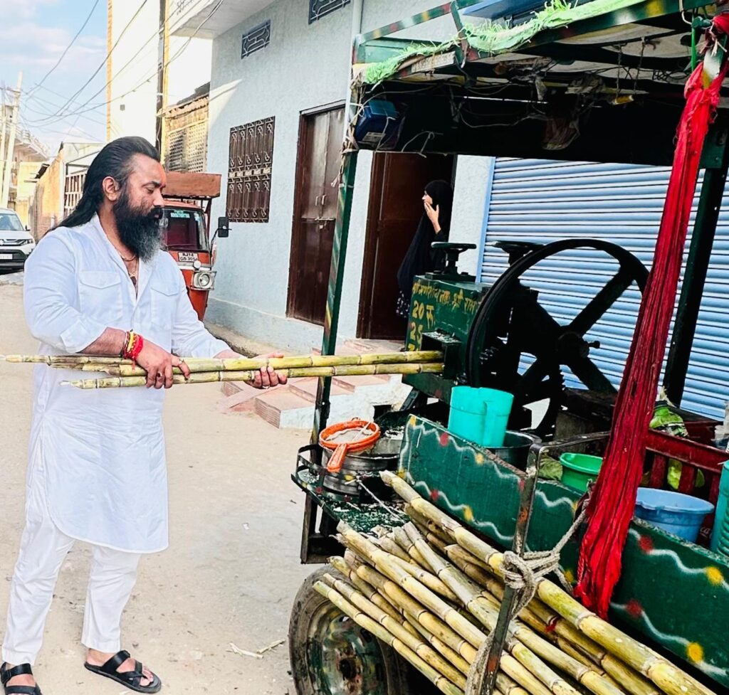मनोहरपुर (जयपुर)। तेज धूप में गन्ने बेचने वाले गरीब व्यक्ति की उदासी को ऑल इंडिया किसान काँग्रेस के राष्ट्रीय महासचिव दिगराज सिंह शाहपुरा ने अपनी पहल से खुशी में बदल दिया। उन्होंने खुद गन्ने का ज्यूस बनाकर लोगों को पिलाया और गरीबों की दुआएं लीं।