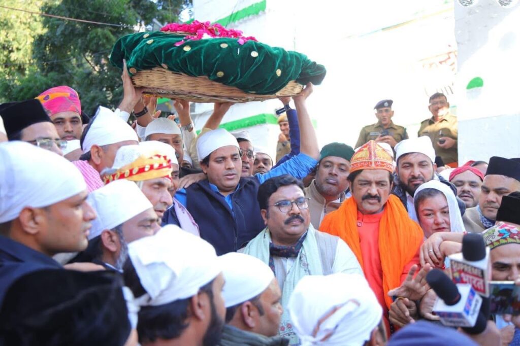 मनोहरपुर (जयपुर)। कांग्रेसी नेता नदीम खान पठान ने कहा कि अजमेर में स्तिथ हिन्दू मुस्लिम एकता के प्रतीक हजरत ख्वाजा गरीब नवाज रहमतुल्लाह आलेह बुझी हुई उम्मीदों का आख़री सहारा हैं यह शब्द पठान ने अजमेर में चादर पेश करने के बाद में उपस्तिथ पत्रकारों से कही।