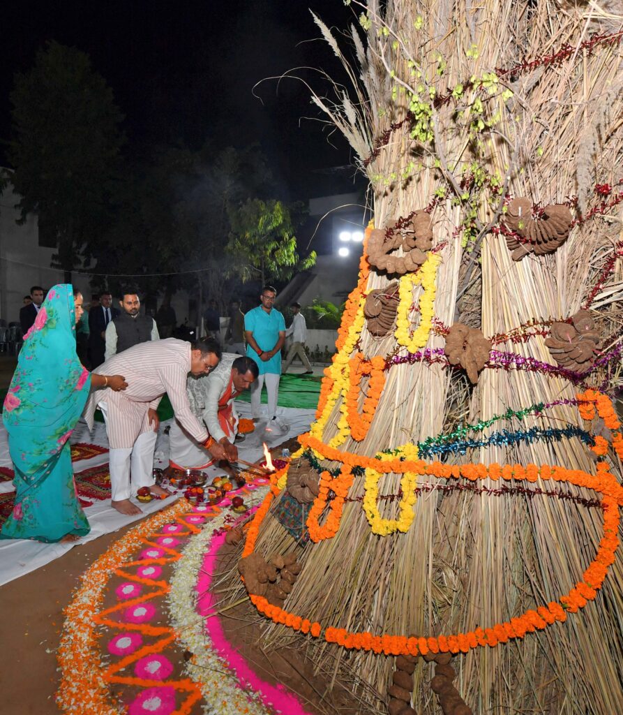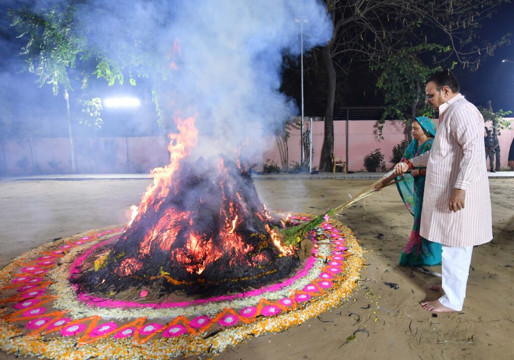 सीएम शर्मा ने यहां राज राजेश्वरी मंदिर प्रागंण में विधिवत् रूप से होली पूजन किया। इसके बाद मंत्रोच्चार के बीच होलिका दहन किया गया। इस दौरान राजस्थान पुलिस की आरएसी बटालियन के जवानों ने चंग की थाप पर होली के गीत और नृत्य प्रस्तुत किए। मुख्यमंत्री ने जवानों से मिलकर उनकी हौसला अफजाई की।