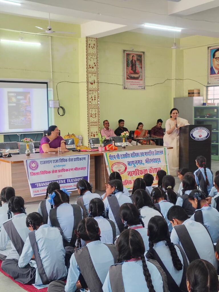भीलवाड़ा। पीएम श्री राजकीय बालिका उच्च माध्यमिक विद्यालय बापू नगर में आज जिला विधिक सेवा प्राधिकरण के तत्वावधान में विधिक सहायता जागरूकता शिविर का आयोजन किया गया।