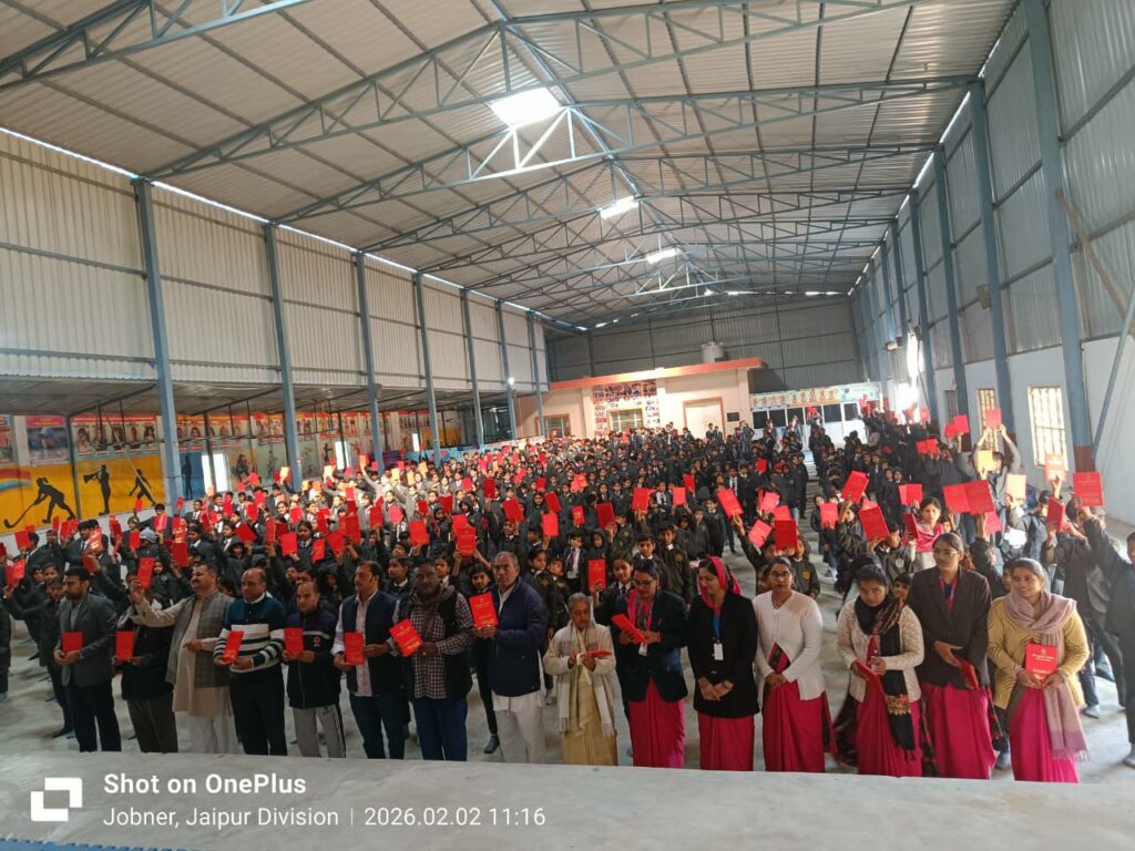 जयपुर। श्री हनुमान चालीसा प्रबंध समिति के संस्थापक संत अमरनाथ महाराज के सानिध्य में जोबनेर स्थित सरस्वती कॉन्वेंट सीनियर सेकेंडरी स्कूल में श्री हनुमान चालीसा सामूहिक पाठ का भव्य आयोजन किया गया। इस कार्यक्रम में बड़ी संख्या में विद्यार्थियों ने भाग लिया और पूरे भाव व श्रद्धा के साथ एक स्वर में हनुमान चालीसा का पाठ किया।