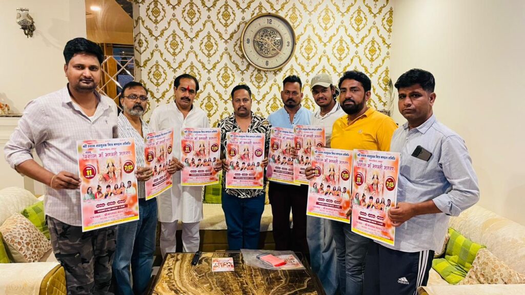 जयपुर। विद्याधर नगर विधानसभा क्षेत्र में वार्ड नंबर 13 श्याम नवयुवक मित्र मंडल समिति के अध्यक्ष एवं सदस्य 11 अक्टूबर को होने वाले विशाल मां भगवती जागरण मंगलेश्वर महादेव मंदिर में होगा। इसका पोस्टर विमोचन भाजपा के समाज सेवी विष्णु प्रताप सिंह ने अपने निवास पर उपस्थित लोगों के बीच किया। इस अवसर पर 12 अक्टूबर को 1100 कन्याओं का भोजन प्रसादी कार्यक्रम होगा।