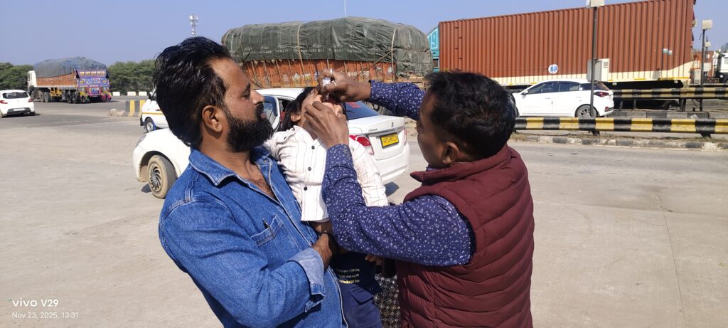 टोल प्लाज़ा पर चलाया गया पल्स पोलियो अभियान