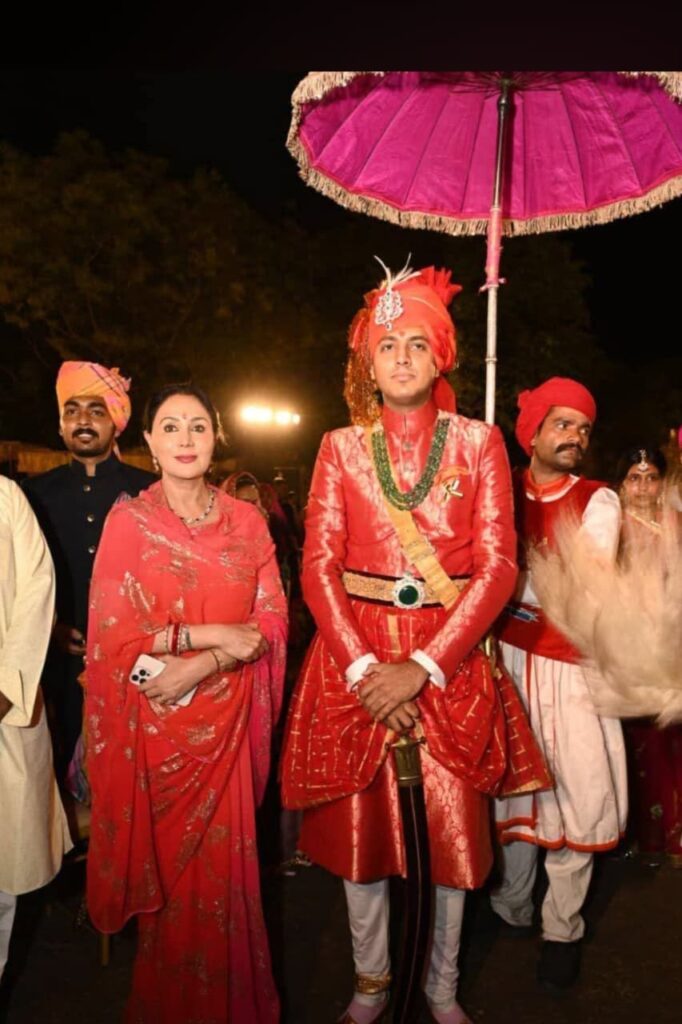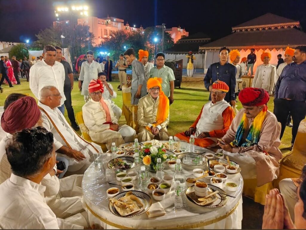 शाहपुरा (जयपुर)। जयपुर ग्रामीण सांसद राव राजेंद्र सिंह के सुपुत्र राजकुमार देवायुष सिंह रविवार को मध्यप्रदेश के पूर्व मुख्यमंत्री दिग्विजय सिंह की दोहिती कात्यायनी सिंह के साथ परिणय सूत्र में बंध गए। मीडिया प्रभारी सुभाष जोशी ने बताया कि चंदवाजी स्थित रूपगढ़ पैलेस में आयोजित इस हाई-प्रोफाइल विवाह समारोह में सत्ता, राजनीति, खेल जगत, उद्योग जगत की नामचीन हस्तियों सहित वीआईपी, वीवीआईपी मेहमानों का जमावड़ा रहा। इस दौरान बिशनगढ़ फोर्ट से पारंपरिक शाही लवाजमे और शाही बारात के साथ राजकुमार देवायुष सिंह रूपगढ़ पैलेस पहुंचे जिनका भारतीय परंपरा अनुसार जोरदार स्वागत सत्कार किया गया। इस दौरान वैदिक मंत्रोच्चार के बीच शुभ मुहूर्त में विवाह की मुख्य रस्में संपन्न हुई। समारोह में राजस्थानी लोक संगीत और ‘पधारो म्हारे देश’ की धुनों ने समां बांध दिया। सांस्कृतिक कार्यक्रमों के बीच देर रात तक आशीर्वाद समारोह चलता रहा। विवाह में पूर्व उपराष्ट्रपति जगदीप धनखड़, महामहिम राज्यपाल हरिभाऊ किशनराव बागडे, पूर्व मुख्यमंत्री वसुंधरा राजे सिंधिया, उपमुख्यमंत्री एवं वित्त मंत्री दिया कुमारी, चिकित्सा मंत्री गजेन्द्र सिंह खींवसर, पूर्व स्वायत्त शासन मंत्री प्रताप सिंह सिंघवी, सीकर के पूर्व सांसद सुमेधानंद सरस्वती, राज्य मंत्री गौतम दक, भाजपा के पूर्व प्रदेश अध्यक्ष सतीश पूनिया, गृह राज्य मंत्री जवाहर सिंह बेढम, पूर्व चिकित्सा मंत्री नरपत सिंह राजवी, हवामहल विधायक बालमुकुंदाचार्य, पूर्व क्रिकेटर अजय जडेजा, जमवारामगढ़ विधायक महेंद्र पाल मीणा, लालचंद कटारिया, राजेंद्र यादव, विराटनगर विधायक कुलदीप धनकड़, रामलाल शर्मा सहित कई मंत्रियों, सांसदों और विधायकों ने शिरकत की। इस दौरान जयपुर ग्रामीण पुलिस द्वारा सुरक्षा के लिहाज से कड़े इंतजाम किए गए तथा ट्रैफिक के लिए विशेष रूट चार्ट लागू किया गया।