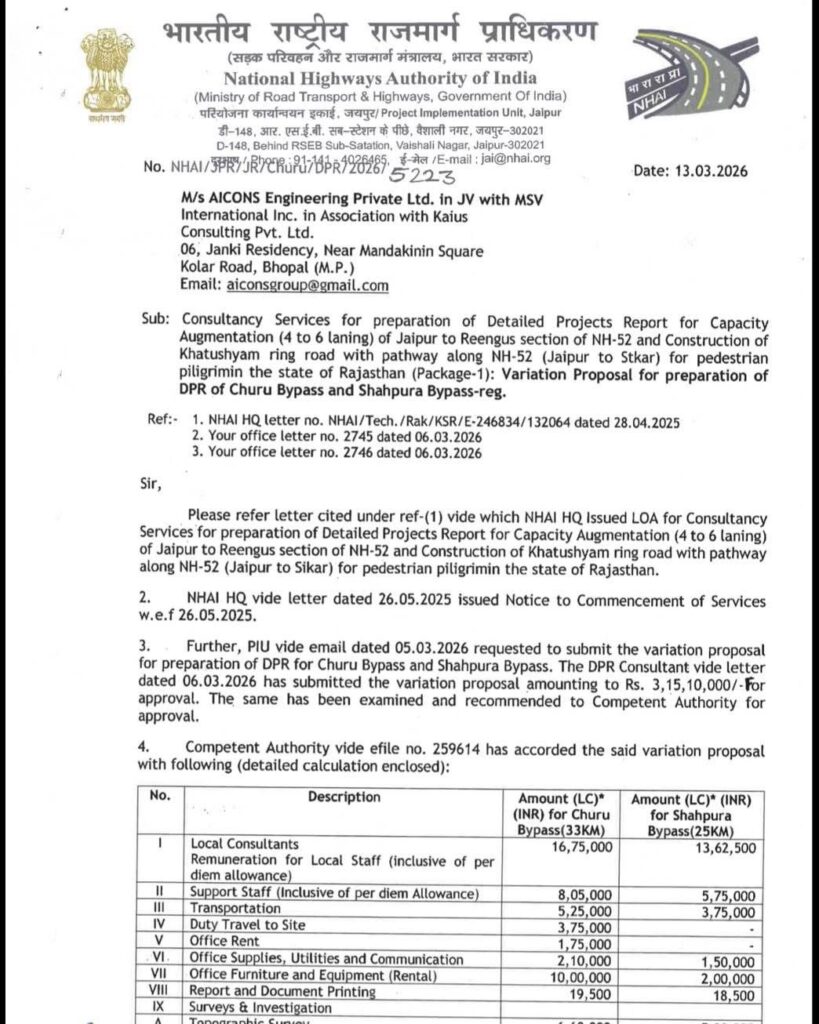 जयपुर/शाहपुरा।कस्बे में बढ़ती ट्रैफिक जाम की समस्या के समाधान की दिशा में एक महत्वपूर्ण कदम उठाते हुए करीब 25 किलोमीटर लंबे प्रस्तावित शाहपुरा बाईपास की डीपीआर के लिए 1 करोड़ 9 लाख रुपये की राशि स्वीकृत की गई है।
