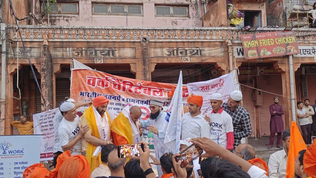 वर्क राजस्थान चेप्टर ने वर्क हैड लाइक हसन के नेतृत्व में रामगंज क्षेत्र में रामनवमी शोभायात्रा पर पुष्प की वर्षा की फूलों की बरसात से शोभायात्रा में शामिल भक्त झूम उठे। वर्क टीम से महिलाओं ने भी अपनी उपस्थिति दर्ज कराई। वर्क हैड लाइक हसन ने सभी महापुरुषों की जयंती मनाने का आह्वान किया। डॉक्टर तस्लीम, डॉक्टर मलिका, यूसुफ खान, एडवोकेट अफजल, एडवोकेट मोहम्मद फरजान, रुबीना तबस्सुम, जोंटी भाई इत्यादि रहे मौजूद।