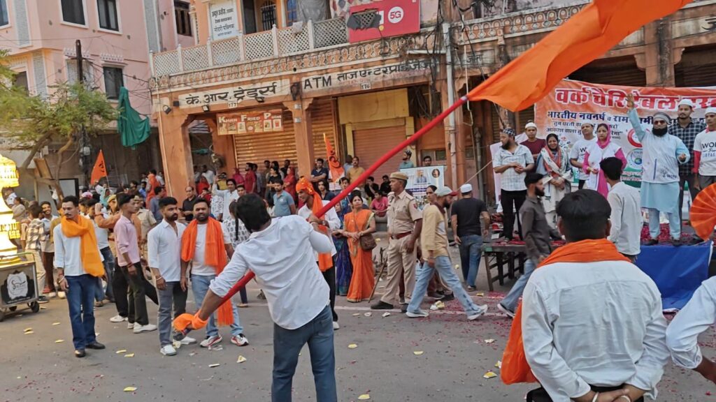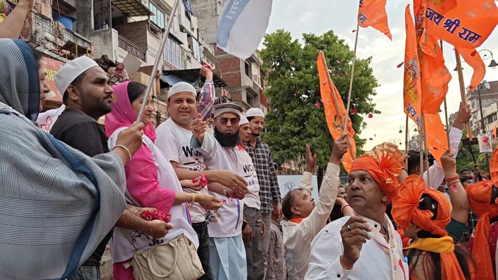 रामनवमी पर्व पर आयोजित शोभायात्रा पर मुस्लिम समाज ने की पुष्प वर्षा`