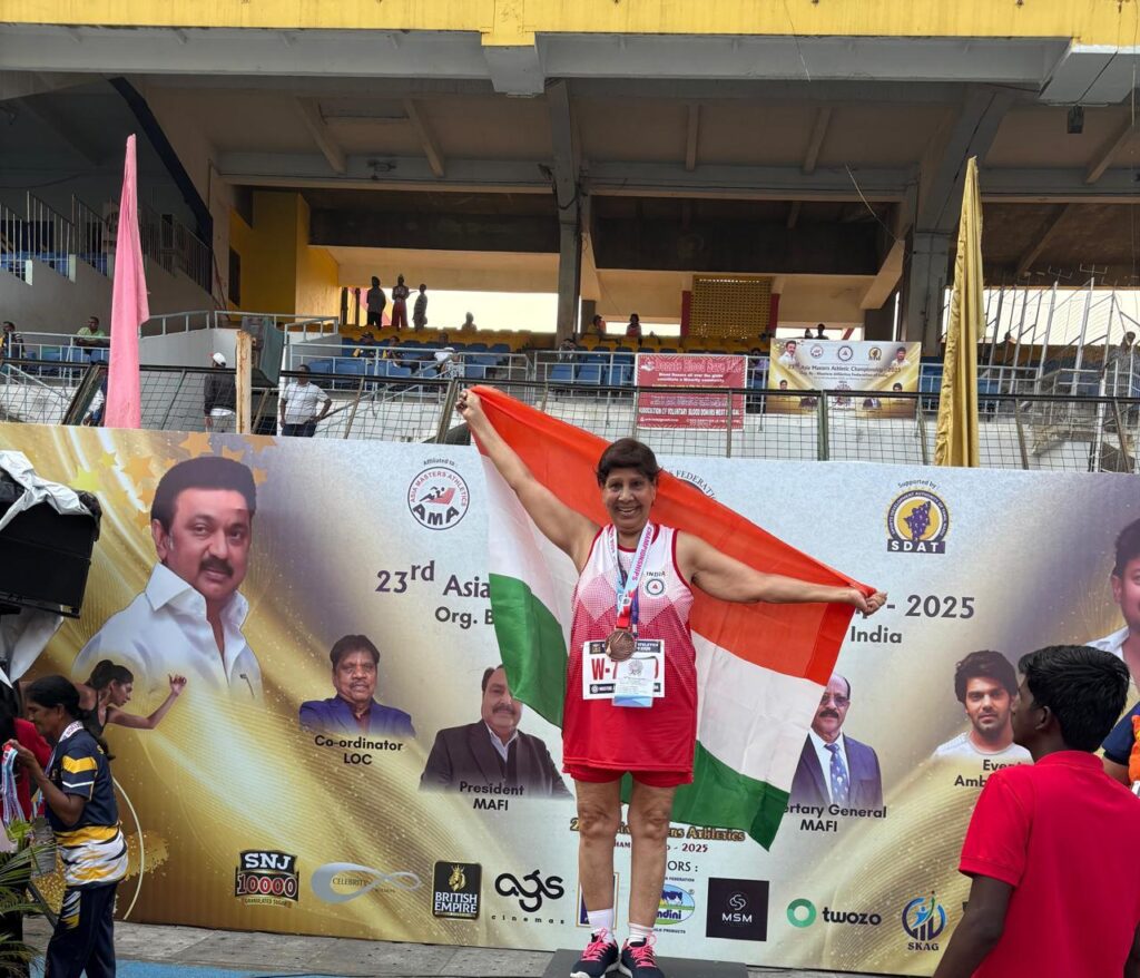 चेन्नई। चेन्नई में आयोजित एशियन मास्टर्स एथलेटिक चैंपियनशिप में 22 प्रतिभागी देशों के बीच शम्मी अहलावत ने 400 मीटर बाई 4 रिले रेस में कांस्य पदक जीत कर इतिहास रचा। 23वीं एशियन मास्टर्स चैंपियनशिप 4 नवंबर से 9 नवंबर 2025 तक चेन्नई में आयोजित की गई। शम्मी अहलावत का कांस्य पदक जितने पर इनको बधाइयां, शुभकामनाएं देने वालों का ताँता लगा रहा। वहीँ इनका जीतना हम सभी के लिए बेहद गर्व की बात है। इनका एथलेटिक के लिए समर्पण, अनुशासन और जुझारूपन वाकई एक चैंपियन के सार को दर्शाता है।