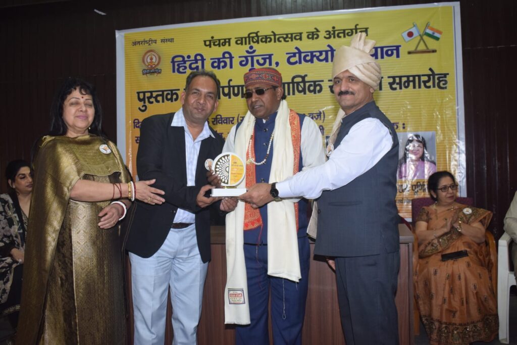 नई दिल्ली। राजघाट स्थित गांधी दर्शन के बी एन पाण्डेय सभागार नई दिल्ली में टोक्यो, जापान से प्रकाशित अंतर्राष्ट्रीय पत्रिका ‘हिंदी की गूंज’ के पंचम वार्षिकोत्सव समारोह के अंतर्गत “पुस्तक लोकार्पण एवं सम्मान समारोह” का भव्य आयोजन किया गया।