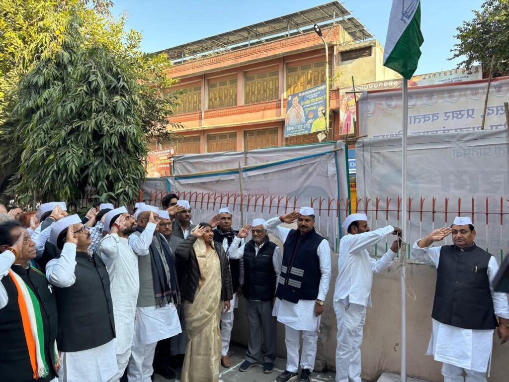जयपुर। कांग्रेस स्थापना दिवस के अवसर पर आज राजस्थान प्रदेश कांग्रेस कमेटी मुख्यालय, जयपुर पर प्रदेशाध्यक्ष गोविन्द सिंह डोटासरा ने कांग्रेस पार्टी का झण्डा फहराकर सभी कांग्रेसजनों को स्थापना दिवस की बधाई दी और प्रदेशभर में कांग्रेस स्थापना दिवस पर आयोजित होने वाले कार्यक्रमों का शुभारम्भ किया। इस अवसर पर मुख्यालय जयपुर पर एक विचार गोष्ठी का भी आयोजन किया गया। विचार गोष्ठी में प्रदेशाध्यक्ष गोविन्द सिंह डोटासरा, नेता प्रतिपक्ष टीकाराम जूली, पूर्व प्रदेशाध्यक्ष डॉ. सी. पी. जोशी तथा कांग्रेस नेता सुनील शर्मा ने कांग्रेस विचारधारा एवं इतिहास में किये गये कार्यों के साथ वर्तमान परिप्रेक्ष्य में कांग्रेस के समक्ष चुनौतियों को लेकर अपने विचार प्रस्तुत किये।