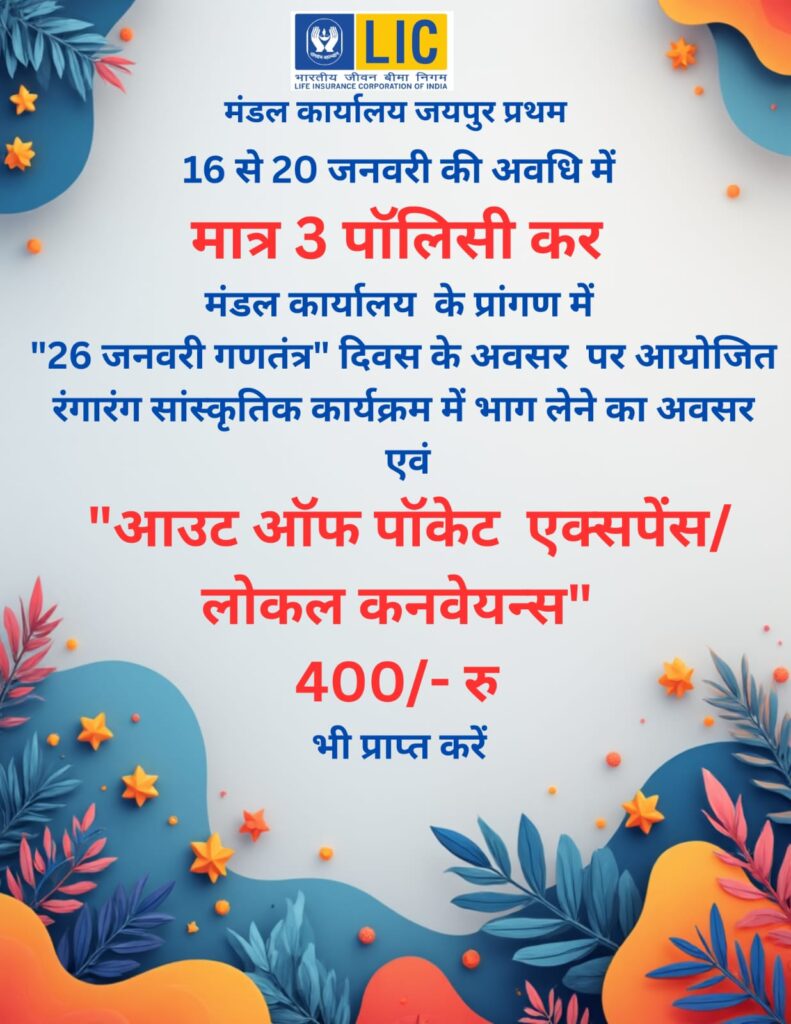 मीटिंग में एलआईसी के वक्ता एवं अधिकारीयों ने विभिन्न विषयों पर जानकारी दी। इस अवसर भारतीय जीवन बीमा निगम जयपुर मंडल प्रथम के वरिष्ठ मंडल प्रबंधक संजय कुमार, शाखा पंचम के शाखा प्रबंधक धर्मेन्द्र सक्सेना, विकास अधिकारी राजेश कुमार, विवेक शर्मा, मोहन सिंह महोलिया, ओम सिंह, लोकेश कुमार, पंकज बत्रा, संजय दुलारिया, नरेंद्र कुमार माली एवं शाखा के प्रिय समस्त अभिकर्ताओं ने भाग लिया एवं मीटिंग को सफल बनाया।