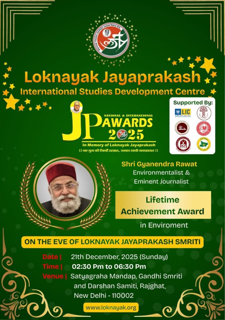 इसके अलावा इस वर्ष मुझे दिल्ली में ” महात्मा गांधी मैमोरियल अवार्ड” और ” बाबा आमटे मैमोरियल अवार्ड “, बागपत जिलांतर्गत बड़ौत में एस्रो द्वारा दिये गये ” पर्यावरण के पुरोधा सम्मान ” ,गांधी स्मृति एवं दर्शन समिति, राजघाट में लोकनायक जय प्रकाश अंतरराष्ट्रीय अध्ययन विकास केन्द्र द्वारा पर्यावरण संरक्षण हेतु बीते दशकों में दिये योगदान हेतु ” जे पी मैमोरियल लाइफटाइम अचीवमेंट अवार्ड ” से व आगरा जिलांतर्गत प्रख्यात तीर्थ स्थल बाबा महेश्वर की नगरी बटेश्वर में आयोजित ग्रामीण पत्रकार सम्मेलन में सम्मानित किया जाना मेरे जीवन की अमूल्य थाती है। इस हेतु मैं पीपलमैन फाउन्डेशन के संस्थापक डा. रघुराज प्रताप सिंह, एस्रो के निदेशक भाई श्री संजय राणा जी, लोकनायक जयप्रकाश अंतरराष्ट्रीय अध्ययन विकास केन्द्र के राष्ट्रीय महासचिव भाई श्री अभय सिन्हा जी व ग्रामीण पत्रकार एसोसिएशन के राष्ट्रीय महासचिव एवं समकालीन चौथी दुनिया पत्रिका के यशस्वी संपादक भाई श्री प्रवीण चौहान जी व समस्त अपने हितैषियों का हृदय से आभार व्यक्त करता हूं।