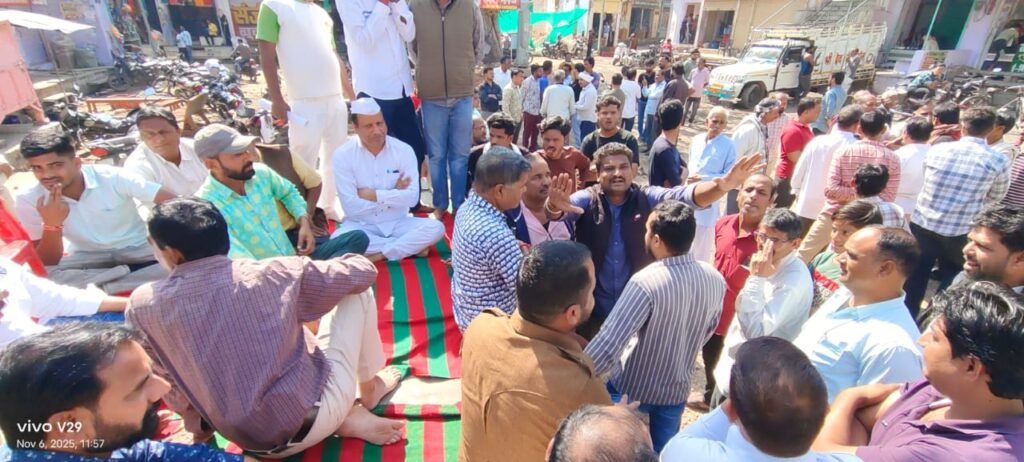 नगर अध्यक्ष अलाउद्दीन खान के नेतृत्व में कांग्रेस कार्यकर्ता धरने पर बैठे