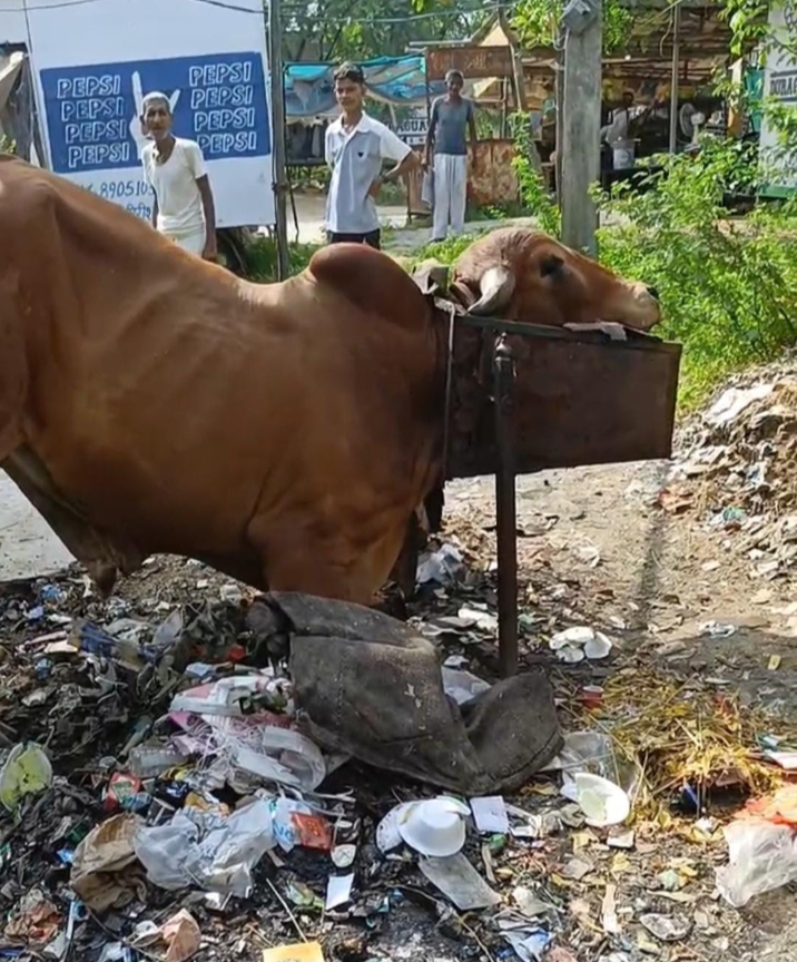 मनोहरपुर (जयपुर)। नगर पालिका प्रशासन की लापरवाही ने एक बार फिर बड़ा सवाल खड़ा कर दिया है। बिशनगढ़ मोड पर लगे टूटे कचरा पात्र में आज एक नंदी फंस गया, जिससे पूरे क्षेत्र में हड़कंप मच गया। ग्रामीणों में भारी रोष है और लोग खुलेआम पालिका प्रशासन पर लापरवाही के आरोप लगा रहे हैं।