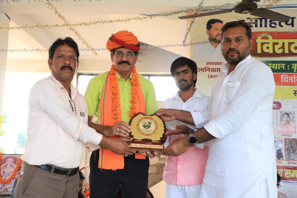 कल्याण गुर्जर कल्याण ने बेहतरीन मुक्तक पढ़े एवं मोबाइल के दुरुपयोग पर राजस्थानी में शानदार और संदेशप्रद गीत पढ़ा।इस अवसर पर अध्यक्ष जी,सभी अतिथिगण, कविगण व,ग्राम से तीन नव चयनित आर ए एस और खोरी से अधिकारी पद पर चयनित एक युवा के सम्मान के साथ साथ कवि कल्याण गुर्जर “कल्याण” को काव्य शिरोमणि सम्मान से नवाजा गया।