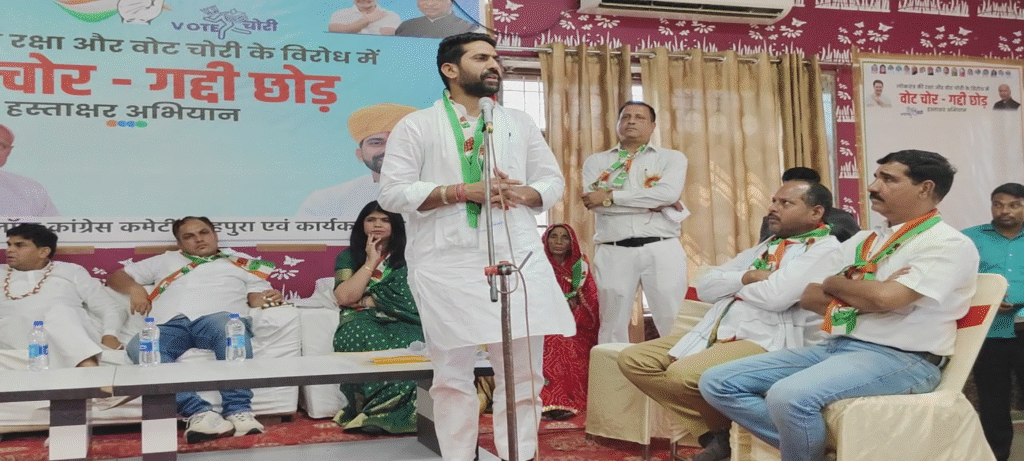 शाहपुरा में “वोट चोर–गद्दी छोड़” हस्ताक्षर अभियान का शुभारंभ