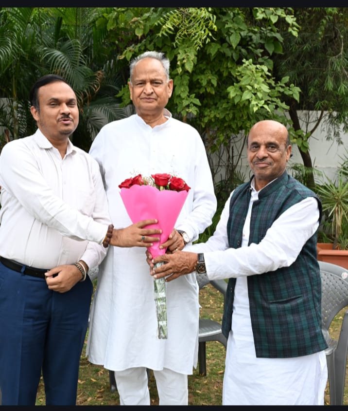 जयपुर। पूर्व मुख्यमंत्री अशोक गहलोत से मुलाकात की और उन्हें ईद और गणगौर के अवसर पर बधाई दी। इस अवसर पर पूर्व पार्षद जाकिर खान और ज्योतिषाचार्य अजय कुमार अग्रवाल ने अपना परिचय देते हुए। उन्हें भविष्य के बारे में जानकारी दी और उनके स्वास्थ्य की प्रार्थना की।